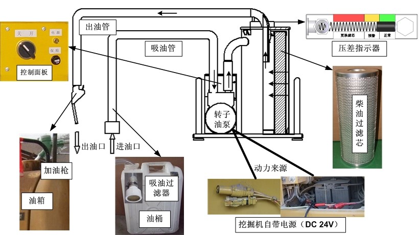 随着发动机工业技术的飞速发展,发动机燃油系统对燃油的品质提出更高的要求。喷油嘴和喷油泵是发动机燃油系统的关键部件,当喷油嘴被燃油中的杂质和水分堵塞或磨损时,燃油的喷射就不正确,于是,发动机功率降低或无规律的熄火,燃油消耗增加。为此,国际上对燃油的清洁度采取严格地控制,对于高性能工程机械而言,加入的新燃油清洁度要求达到国际标准ISO 4406:1999的18/16/13,以确保系统稳定、可靠、高效运行。但国产柴油的清洁度远远达不到国际标准,如此污染严重的新柴油,若不经过严格的过滤净化就使用,将对整个发动机系统的寿命、工作可靠性及油耗带来严重的危害。